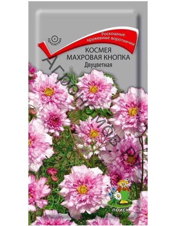 Изобилие махровых розовов-белых цветков. Декоративное растение с ажурными сильнорассеченными листьями, высотой около 80 см. Соцветия – махровые корзинки диаметром 7-10 см на крепких стеблях. Великолепно выглядят на клумбах и в бордюрах, особенно большими массивами. Прекрасный материал для срезки.