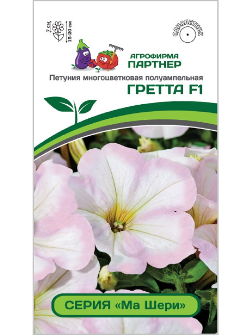 «МА ШЕРИ» – многоцветковая, непрерывно цветущая полуампельная серия петунии. Формирует многочисленные цветоносные побеги и отличается более плотным расположением цветков по всей поверхности куста. Как правило, у стандартных петуний цветение спускается каскадом вниз, обнажая голые стебли в центре растения. Представленная серия была выведена для устранения этого недостатка. Она эффектна не только в начале цветения, но и в течение всего периода вегетации, покоряя массой достаточно крупных цветков. Цветение очень обильное до глубокой осени. Обладает устойчивостью как к повышенным, так и к пониженным температурам. При высоте растения в 15-20 см, ширина куста достигает 60 см. Серия создавалась с целью использования для кашпо, подвесных корзин, а также ландшафтных композиций.