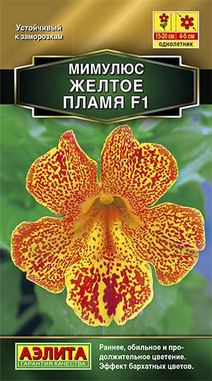 Гетерозисный гибрид мимулюса от компании Floranova (Англия). Ценится за компактность кустика, крупный размер цветка (4 см) и короткий период от посева до бутонизации (5-6 недель). Растения высотой 20-25 см обильно цветут двумя волнами, первая волна – в июне-июле. В середине лета кусты обрезают. Отрастающие молодые побеги обеспечивают вторую волну цветения, обильнее и продолжительнее первой, благодаря устойчивости гибридов к заморозкам до -4°С. Мимулюсы используют для оформления затененных цветников, балконных контейнеров. Гибриды можно сохранить до следующего сезона. Для этого осенью растения пересаживают в горшки и переносят для зимовки на прохладный, светлый подоконник.