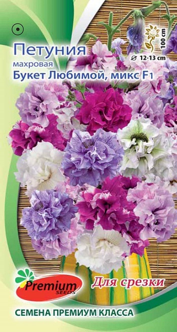 Сенсация в селекции! Первая в мире 100% махровая петуния для срезки! В саду цветёт обильно и продолжительно, а её великолепные букеты будут радовать Вас своей красотой и нежным ароматом в течение 3-х недель после срезки. Растения с длинным толстым стеблем высотой до 100 см и очень крупными 12-13 см, махровыми цветками, которые как яркие фонарики расположены плотно по всему растению, долго цветут и не опадают.