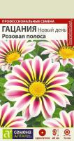 Восхитительный однолетник! Гацании серии New Day компактны, отличаются простотой выращивания, отлично подходят для загущенных посадок, держат цветок открытым до позднего вечера. Кустик крепкий, ветвящийся, шириной 15-20 см. Очень крупные соцветия с темным кольцом вокруг центра и необычной полосатой бело-розовой окраской лепестков не оставят равнодушными даже самых искушенных цветоводов. Используется для оформления рабаток, бордюров, каменистых горок, отлично смотрится в вазонах, балконных и оконных ящиках.