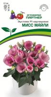 Лучшая контейнерная новинка для дома и сада! Чрезвычайно декоративную МИСС МАЙЛИ отличает компактность, прочность стеблей и исключительная выравненность растений. Отличное кущение позволяет закладывать большое количество бутонов, образуя невероятную шапку из цветков. Это миниатюрное растение формирует цветоносы практически из розетки листьев. Несоизмеримо крупные, ширококолокольчатые цветки до 7 см в диаметре расположены по несколько штук на верхушках стеблей и в пазухах листьев. Эустома отлично проявляет себя в садовых композициях: рокариях, альпинариях и цветниках.