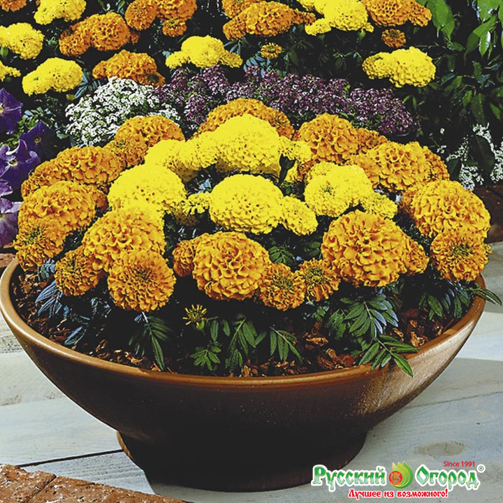 Бархатцы Энтерпрайз F1 – одна из самых компактных смесей данного вида растения! Высота растений достигает всего 25 см. Серия устанавливает новые стандарты размера в своем классе! Сильно ветвящиеся побеги с густомахровыми соцветиями, оттененными темно-зеленой листвой, прекрасно подходят для оформления любых, даже совсем небольших, контейнеров и садов. Зацветают они рано, в те же сроки, что и другие бархатцы, при этом качество цветков гораздо выше.