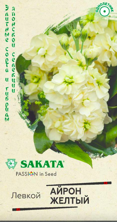Неповторимый, сладкий аромат, длительное цветение и прочные жесткие стебли делают левкои серии «Iron» Sakata популярными у цветоводов. Растения прямостоячие, высотой 60-70 см. Крупные (диаметром 4-4,5 см) махровые цветки желтого оттенка собраны в плотные кистевидные соцветия. Прекрасно подходят для профессиональной срезки для оформления цветников. Зацветает, левкой в июне. Посев семян на рассаду проводят в марте. Рассаду высаживают во второй декаде мая на расстоянии 20 см. В балконные ящики семена высевают в начале мая с последующим прореживанием и для непрерывного цветения проводят повторные посевы через 10-15 дней. Почвенную смесь готовят из дерновой земли и песка (3:1). Левкои светолюбивы и отзывчивы на полив.