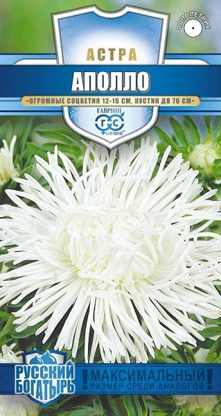 Растение высотой 60-70 см. Соцветия белой окраски 12-15 см в диаметре. Для выращивания подходят хорошо освещенные участки с плодородной суглинистой или супесчаной почвой. Астры обладают высокой холодостойкостью – хорошо переносят заморозки до -3-4°C.