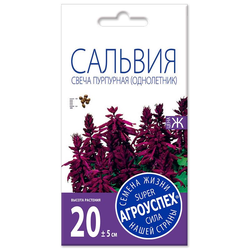 Участница парада цветов. Многолетнее травянистое растение, выращиваемое как однолетник. Кусты компактные, высотой 25-30 см. Пурпурные соцветия – кисти словно парят над ажурной темно-зеленой листвой, придавая неповторимое очарование клумбам, рабаткам, делая сальвию незаменимой участни- цей парада цветов в саду. Цветет с июня до первых заморозков. Прекрасно сочетается с бархатцами и сальвией других окрасок. Используется для оформления переднего края бордюров, украшения вазонов.
