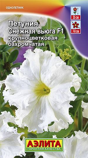 Белоснежная петуния исключительной красоты. Уникальные цветки диаметром 7-8 см с изящной бахромой по краю венчика напоминают драгоценные кружева. Нарядные растения высотой 30-35 см имеют компактный габитус в виде полусферы. Кусты довольно плотные, густые. Сорт отлично удается в контейнерном декоре. Рекомендуется для оформления балконов, террас, патио. Цветки могут страдать от излишней влаги. В открытом грунте необходимо предусмотреть защиту от дождя или выращивать в мобильных кашпо, которые в случае непогоды можно поместить под навес.