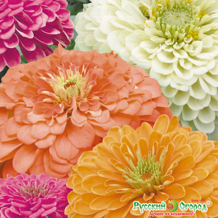 Цинния Русский Размер, 5 окрасок – восхитительная цветущая смесь для любого садового приусадебного участка. Мы собрали этот гармоничный набор семян циннии именно для вас, чтобы сэкономить время и посеять уже готовую колоритную смесь, из которой вырастут большие пышные цветки самых потрясающих оттенков – оранжевого, малинового, белого, бордового, лососевого. Получается прелестный фейерверк пастельных и ярких цветов, который смотрится абсолютно самостоятельно как на клумбе, так и в летнем букете. Средний размер каждого цветка составляет от 12 сантиметров в диаметре!