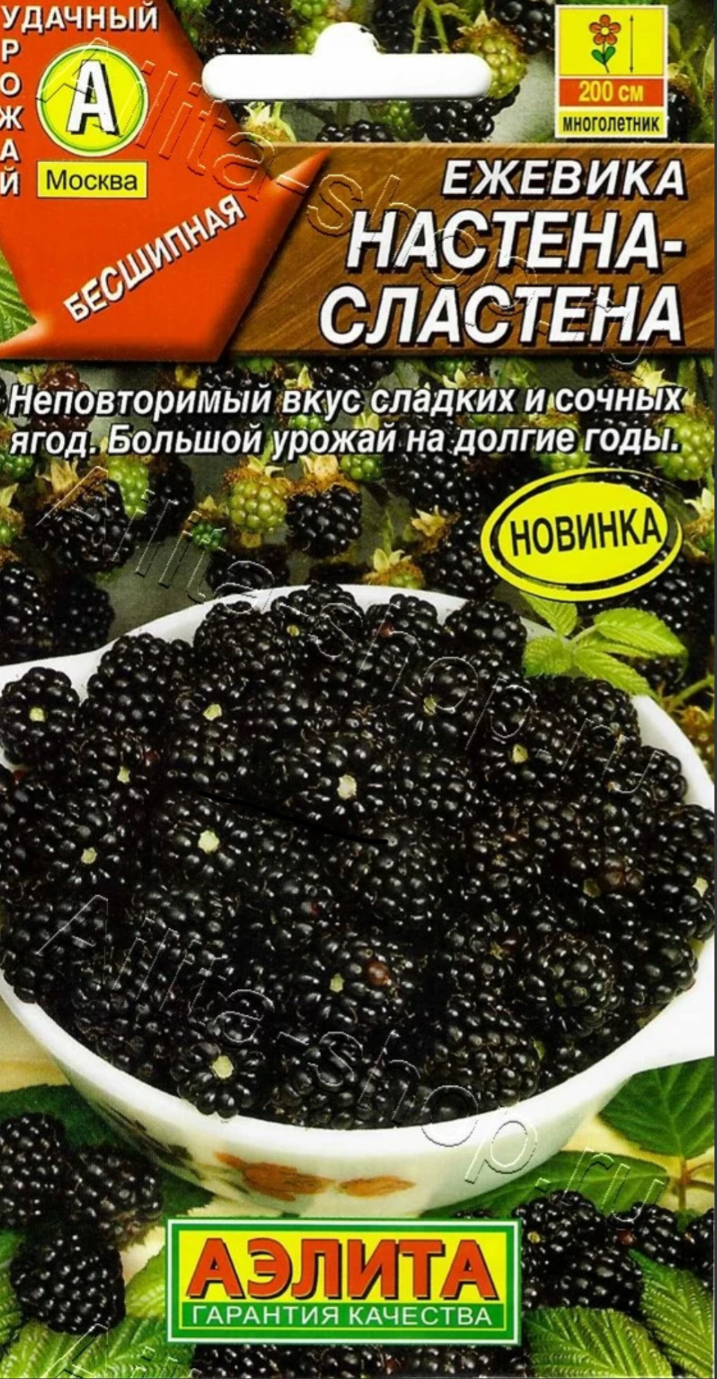 Вырастить ежевику из семян могут даже начинающие садоводы. Сеянцы лучше адаптируются к климатическим условиям региона выращивания, легче приживаются и не заражены болезнями. Растения неприхотливые, засухоустойчивые, зимостойкие, без шипов. Кусты высотой 190-200 см. Ягоды крупные, массой 4,5-5 г, сладкие и сочные. Они великолепны в свежем виде, широко используются для переработки. Подходят для сушки и замораживания. Продуктивность одного куста 2-3 кг. Отличный медонос. Перед посевом семена стратифицируют (смешивают с влажным песком и помещают в холодильник на 3-4 месяца).