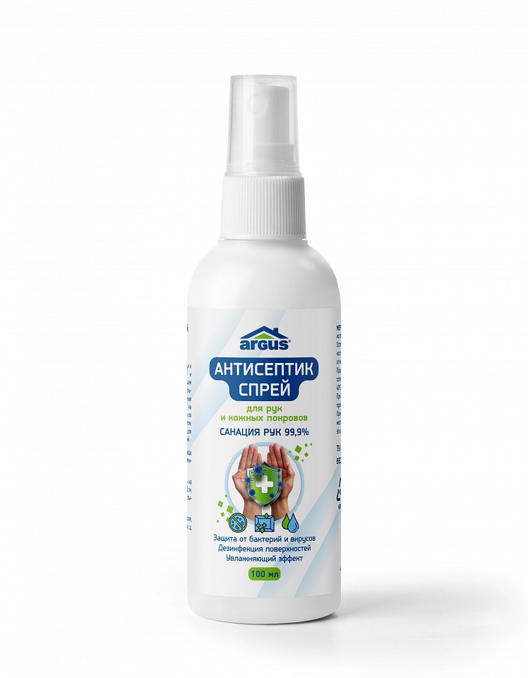 ARGUS антисептическое средство спрей 100 мл.Устраняет 99,99% наиболее распространенных болезнетворных бактерий, грибов и вирусов.
