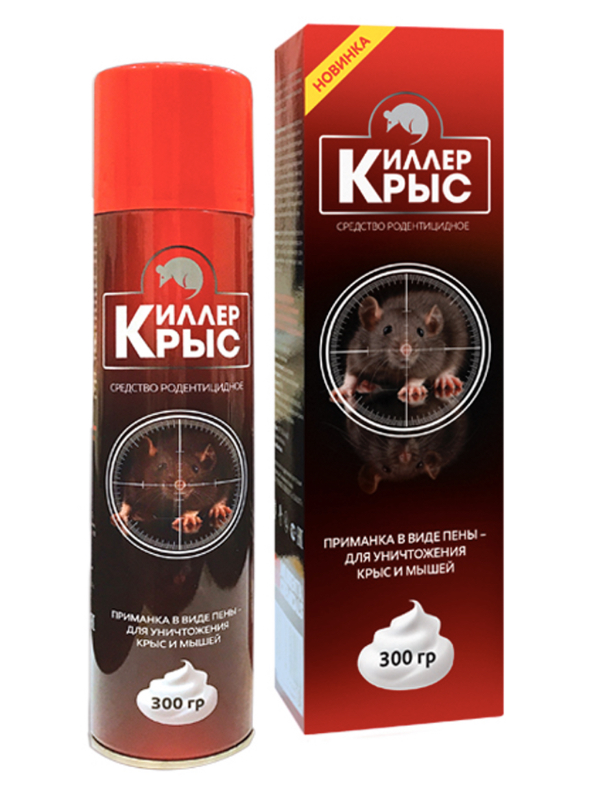 «Киллер крыс» – это родентицидное средство, направленное на истребление крыс, мышей, землероек, кротов. Предназначено для использования в помещениях, а также для запенивания земляных нор на улице при условии присыпания землей. Действующее вещество – бромадиолон.