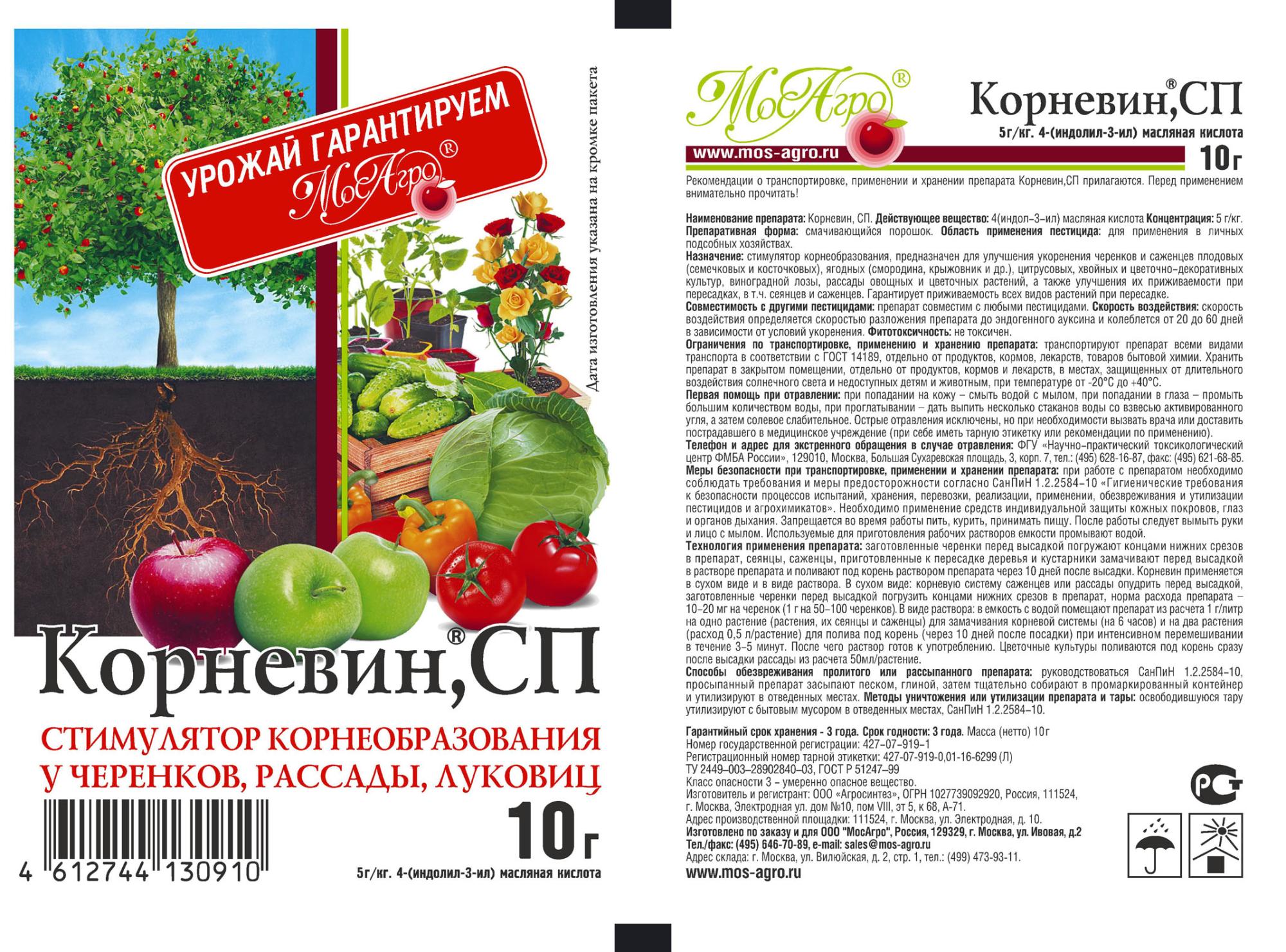 Корневин - используется для укоренения саженцев плодовых, ягодных, декоративных и цветочных культур, ускорения их корнеобразования при черенковании, улучшения приживаемости рассады овощных и цветочных культур при пересадках.