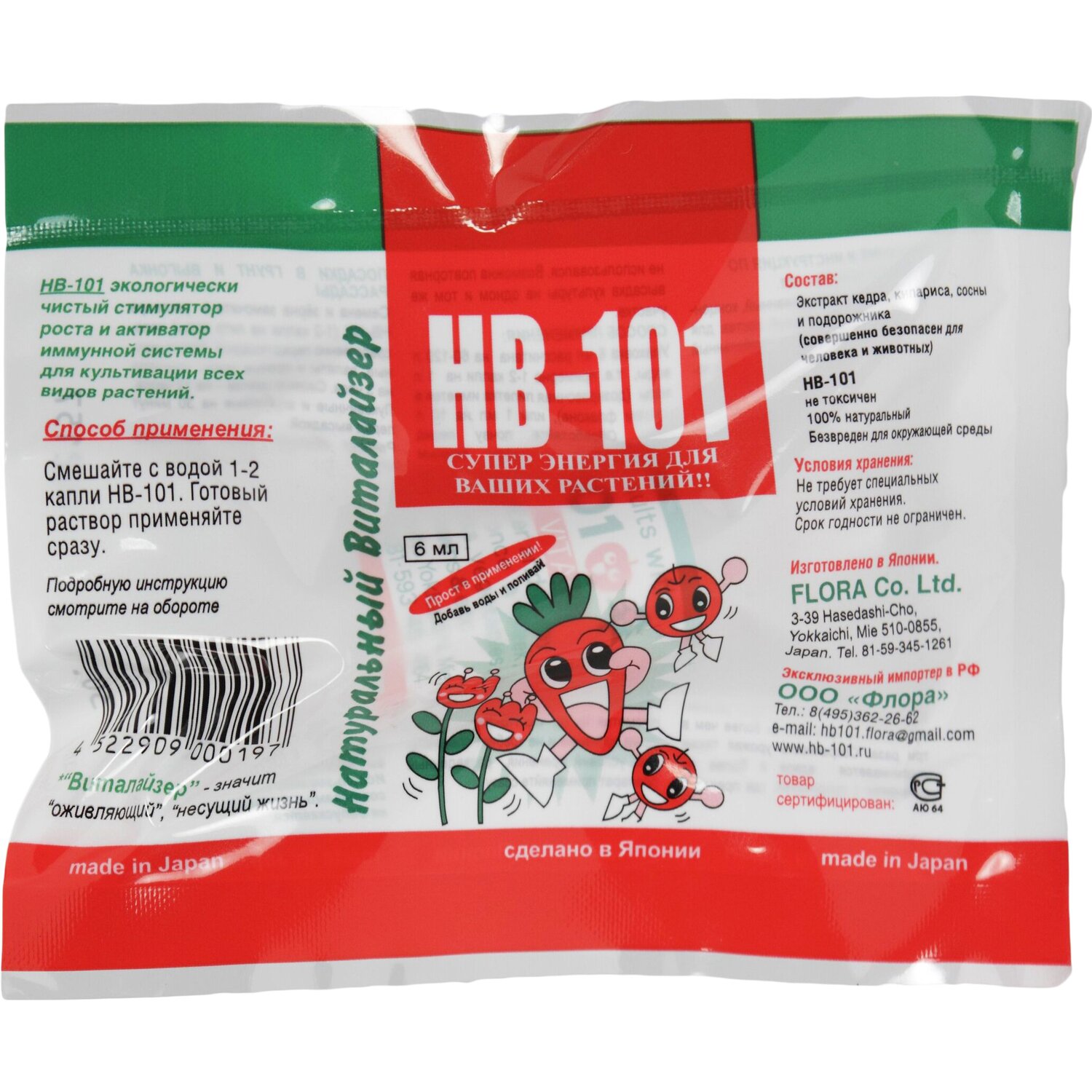 Виталайзер HB-101 — это абсолютно натуральный стимулятор роста и активатор иммунной системы растений, созданный на основе вытяжек из сосны, кедра и кипариса. Главный секрет долголетия этих растений — это их уникальный белково-минеральный комплекс. А подорожник известен своими целебными свойствами. Стимулятор роста растений HB-101 сочетает все эти компоненты и дает природную жизненную силу вашим растениям, он поможет сделать их более крепкими и здоровыми, а плоды — более крупными и самое главное, более питательными!
