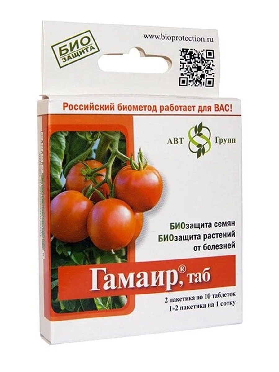 Гамаир, таб - биологический бактерицид на основе природной бактерии Bacillus subtilis М – 22 ВИЗР, предотвращающий пятнистости на листьях, бактериальные гнили, паршу, монилиоз, бактериальный рак, сосудистый и слизистый бактериозы.