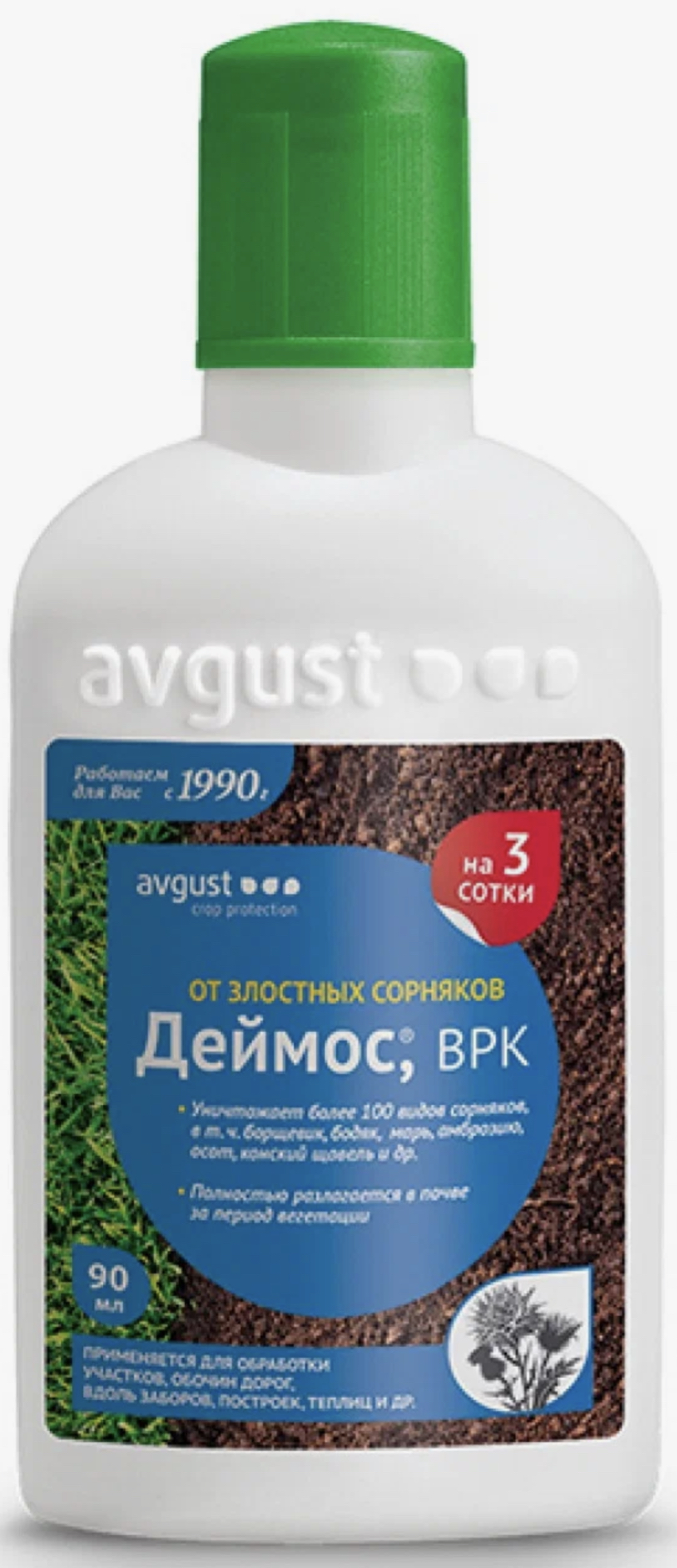 Эффективно уничтожает более 40 видов сорняков, в т.ч. амброзию, осоты, клевер, борщевик, марь и другие.