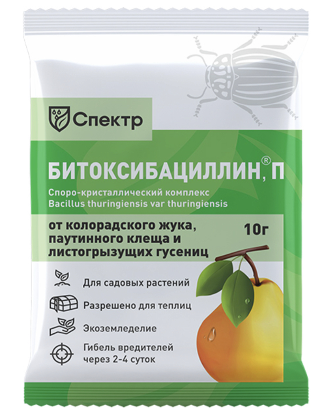Биологический инсектицидный препарат от колорадского жука, паутинного клеща, гусениц плодожорки, капустной совки, капустной и репной белянок, капустной моли, огневки, яблонной и плодовой моли, боярышницы, лугового мотылька, златогузки и других насекомых-вредителей.