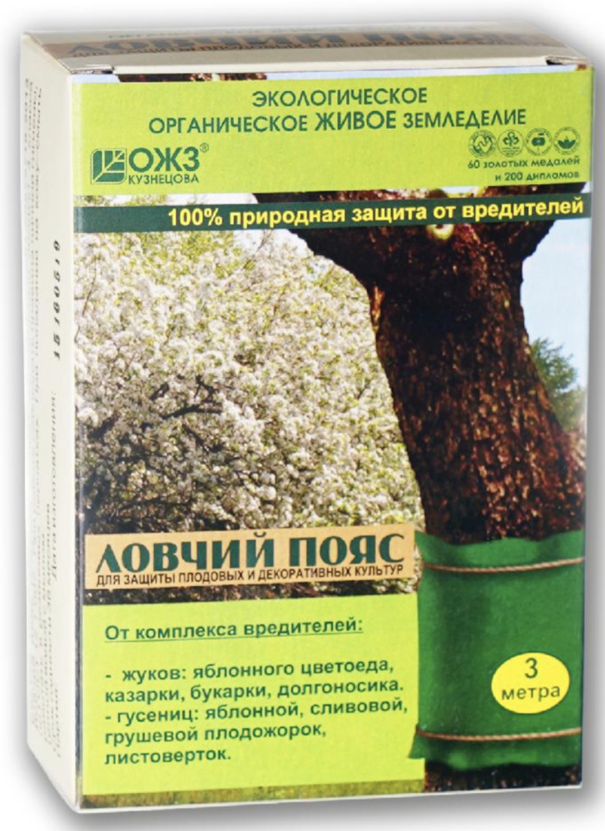 Ловчий пояс – это полностью безопасное и удобное в употреблении средство. Установленный однократно, он долгое время сдерживает вредителей, которые пытаются забраться в крону по стволу. Ловчий пояс состоит из ленты, на которую нанесен специальный энтомологический клей.