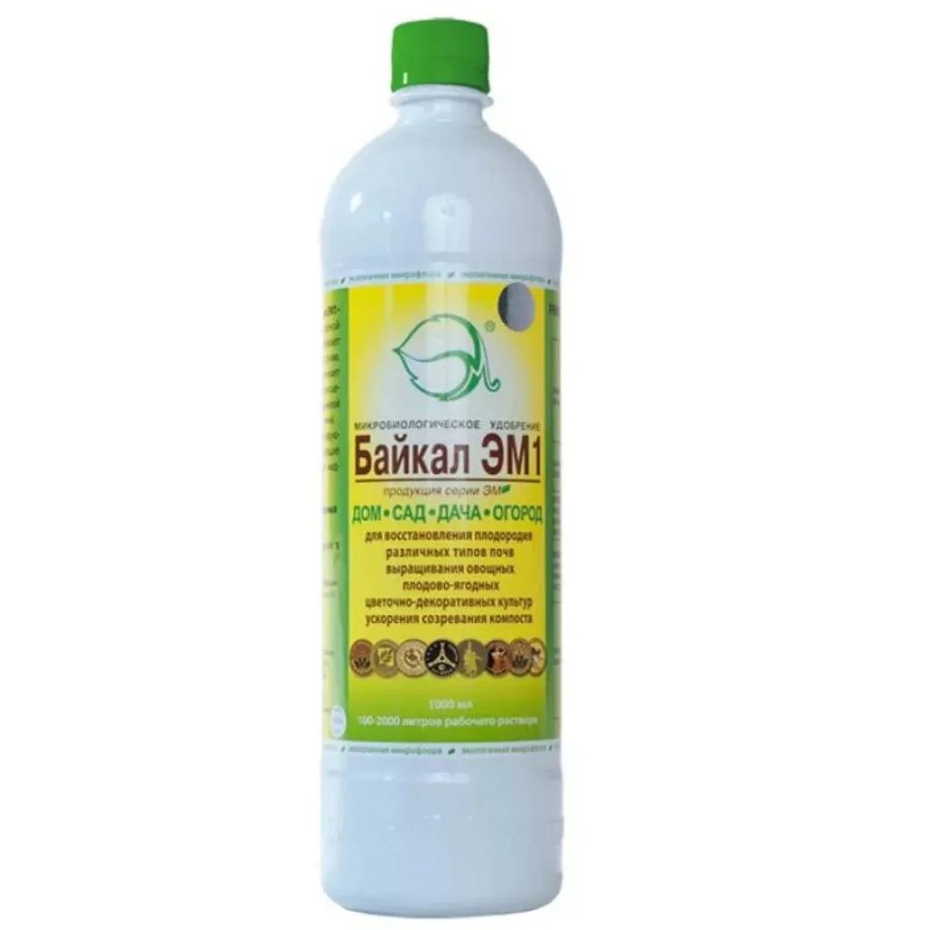 «Байкал ЭМ1" — одно из лучших отечественных микробиологических удобрений, которое является основой российской сельскохозяйственной ЭМ-технологии. Готовый к применению водный раствор, содержащий комплекс специально отобранных природных микроорганизмов: молочнокислые, фотосинтезирующие, азотофиксирующие бактерии, дрожжи и продукты их жизнедеятельности. Эти полезные микроорганизмы обеспечивают питание растениям, подавляют гнилостные бактерии, оздоравливают почву и находят применение в лечении животных и птиц.