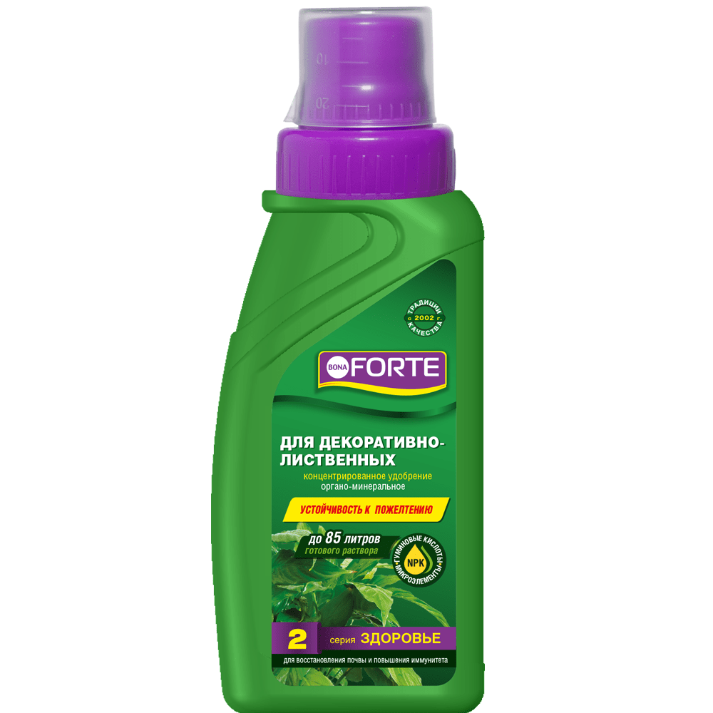 Серия ЗДОРОВЬЕ создана лабораториями Bona Forte для восстановления истощенной почвы и повышения иммунитета растений. Подходит для алоказии, аспарагуса, антуриума, диффенбахии, драцены, клатеи, кротона, колеуса, маранты, монстеры, плюща, сансевиерии, фатсии, фикусов, финика, филодендрона, ховеи, юкки и многих других. Здоровье – первый и основной шаг к красоте декоративных растений. Удобрение содержит полный комплекс веществ, необходимых для полноценного и сбалансированного питания растений.